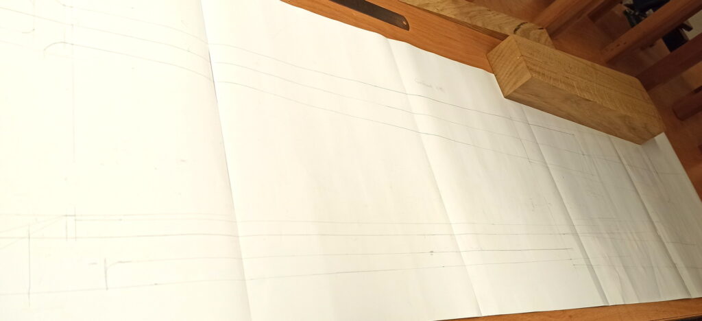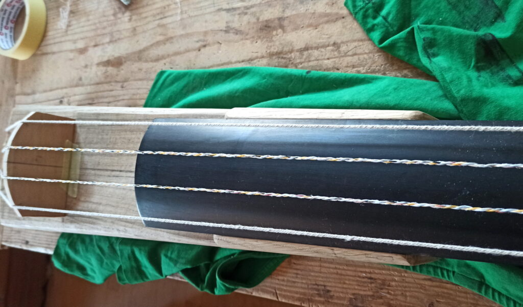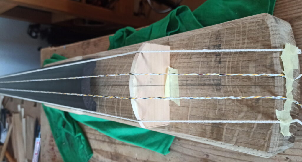 Provisorisch „Saiten“ aufgezogen um Höhe von Steg zu ermitteln