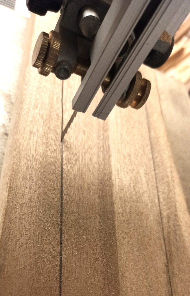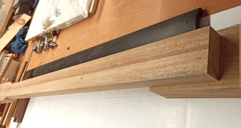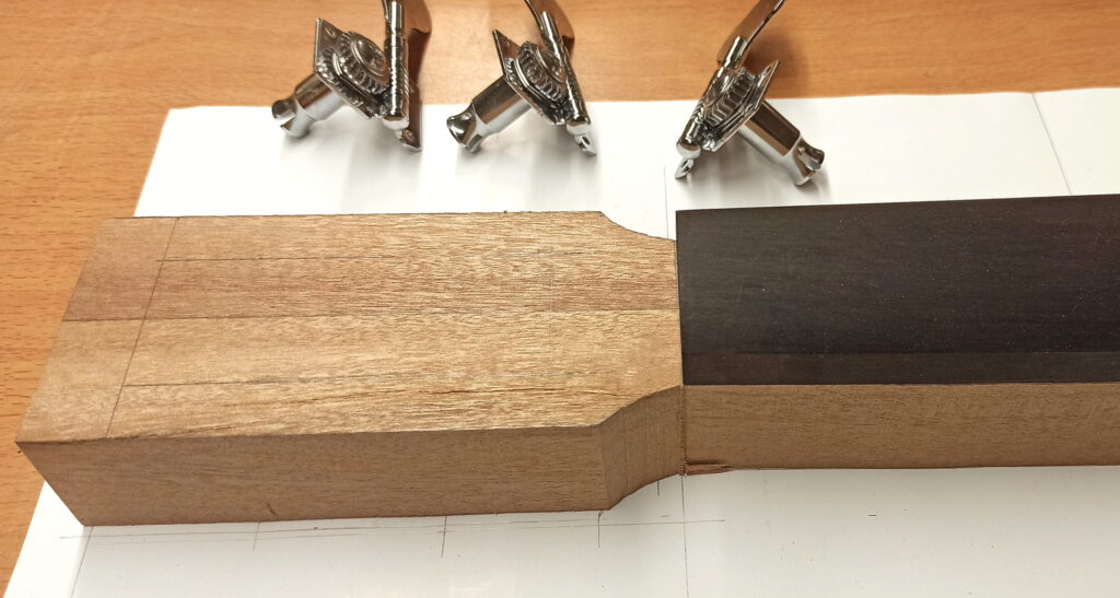 - Der Hals aus zwei Mahagoni-Leisten zusammengeleimt