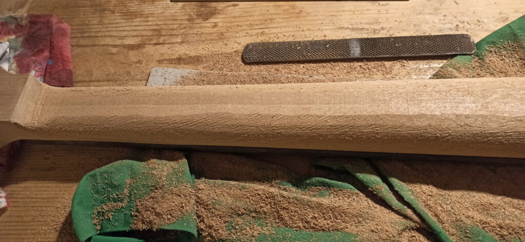 Nun ging es an den Hals und Aussparung für die Mechanik und schleifen…schleifen…schleifen