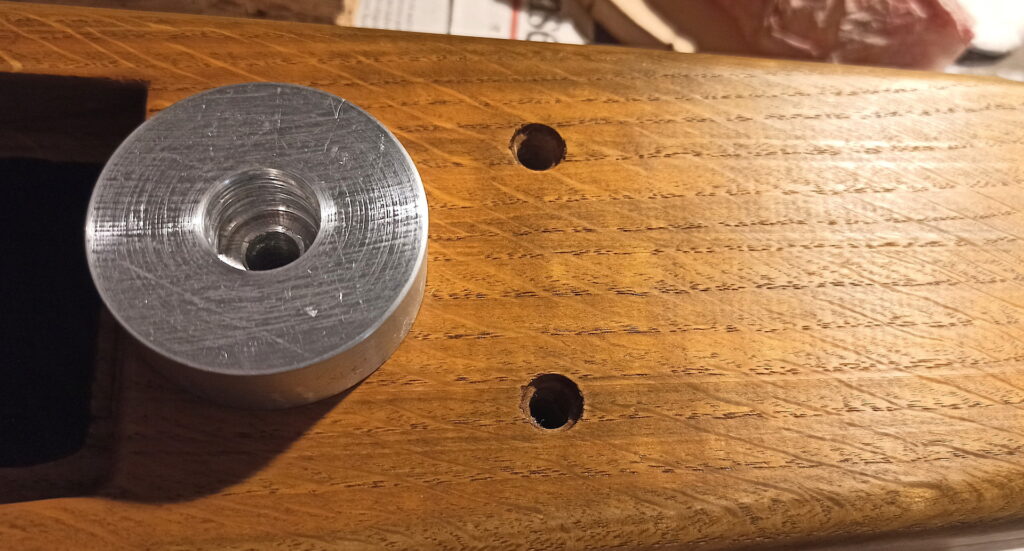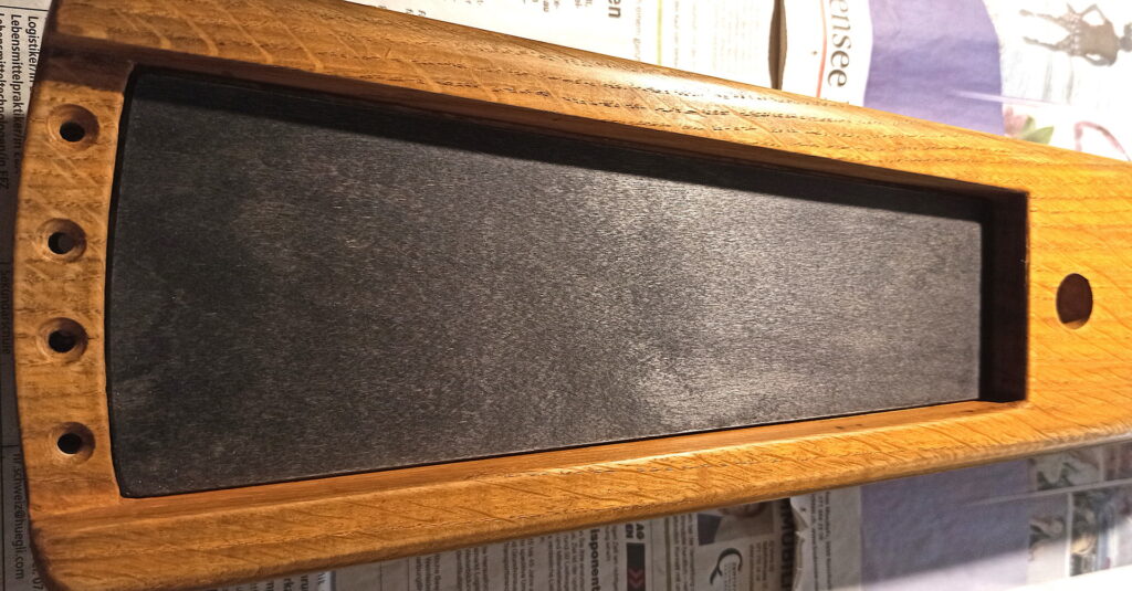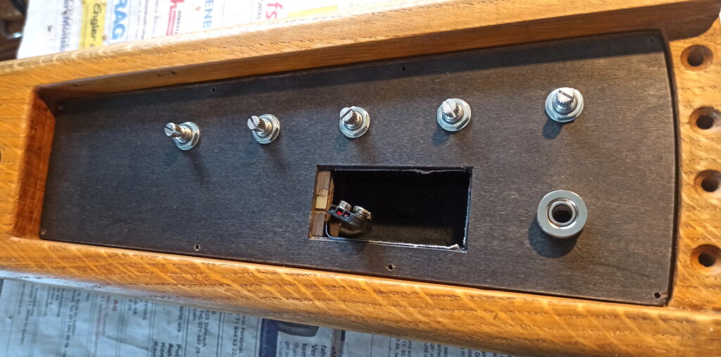 Und jetzt hinten die Aussparung. Einerseits für die Elektronik und entsprechend grösser, damit ein kleiner Hohlkörper unter dem Steg da ist, um ohne Verstärker etwas Ton zu haben.