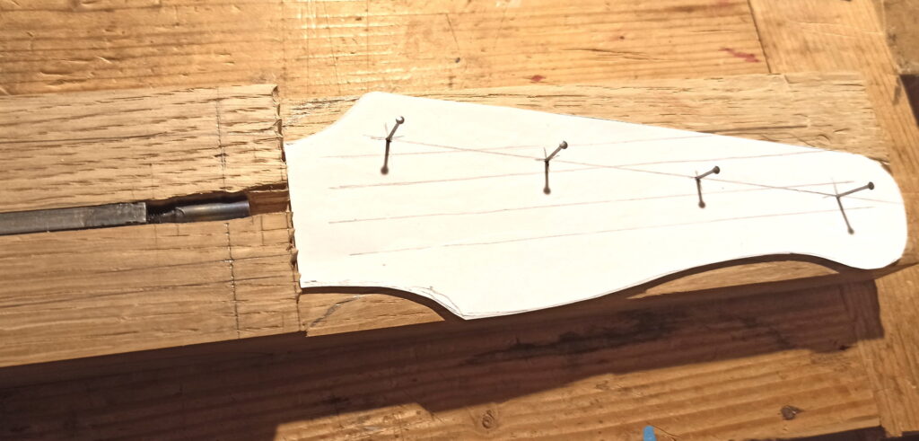 Provisorische „Saiten“ aufgezogen um Höhe zu definieren