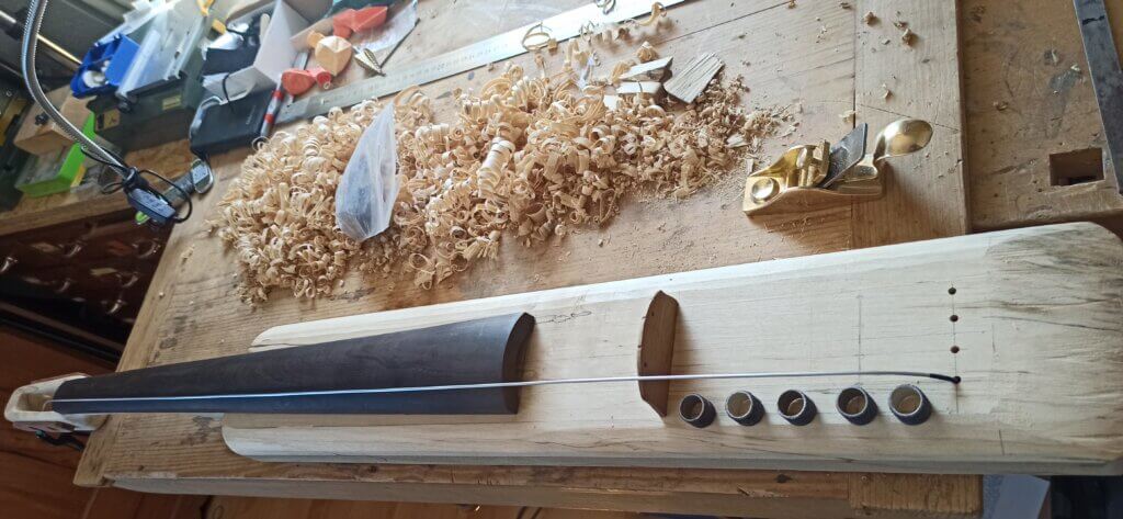 Nun noch etwas an der Form gearbeitet…bisschen mehr Rundungen darf das Instrument schon haben