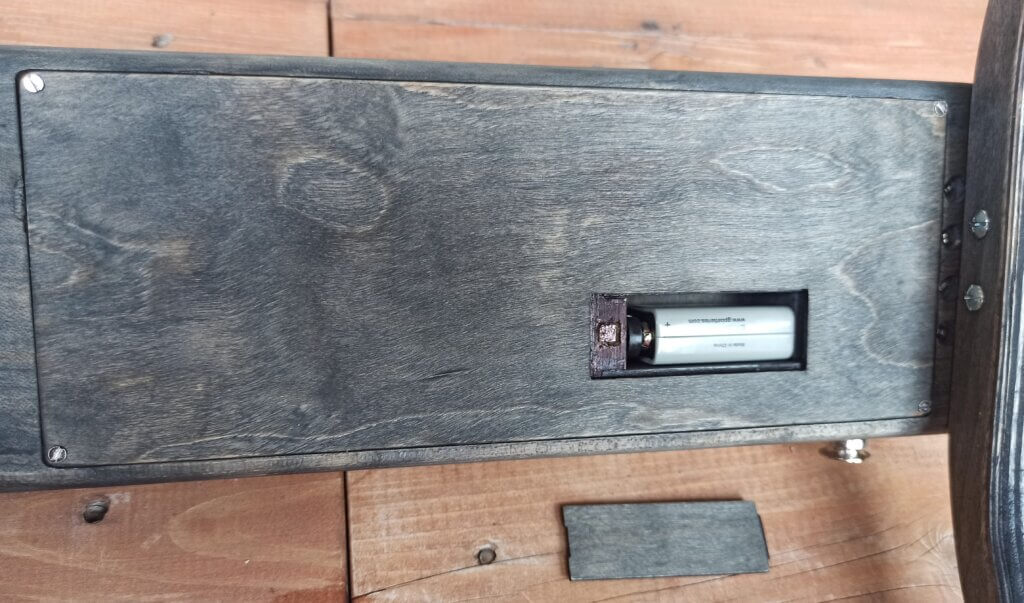 Dass unter dem Steg der Hohlkörper ist und die Decke nur etwa 5mm hat, bringt schon brauchbaren Ton beim „akustischen“ spielen. Optimal um leise zu üben.