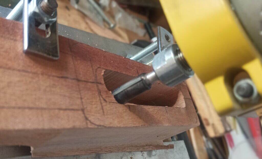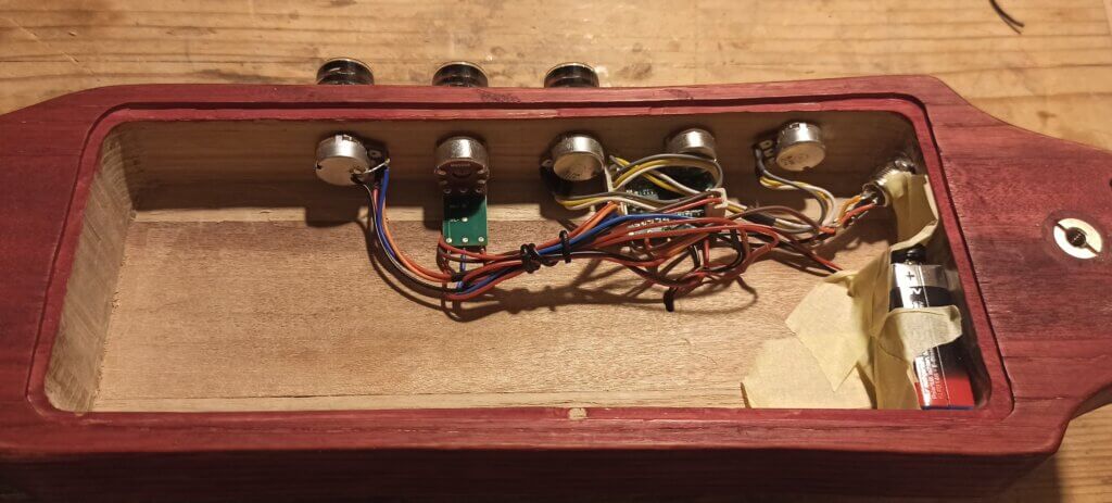 Nun ging es ans aushöhlen vom Korpus und Einbau der Elektronik