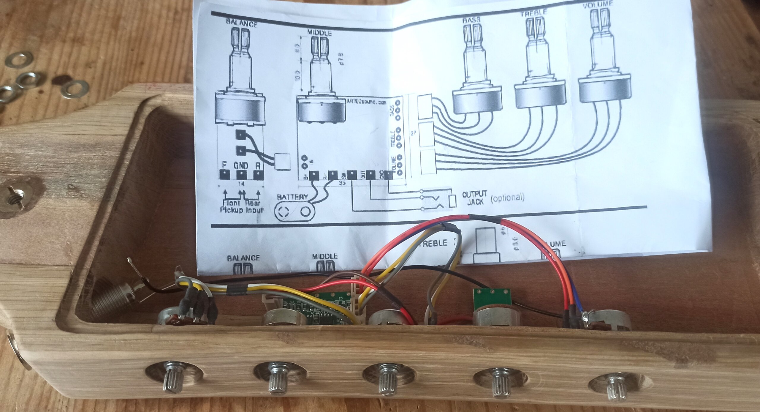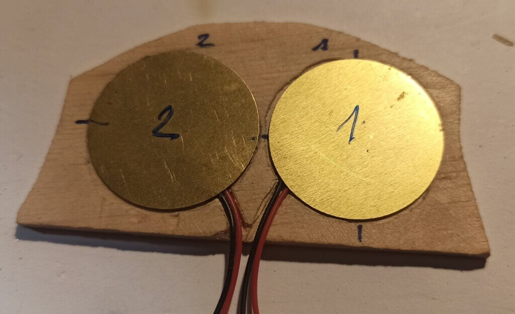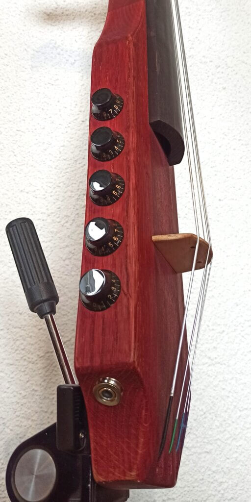 Im Steg habe ich zwei Piezo Tonabnehmer eingebaut, sowie im ersten Cello weil es tatsächlich gut funktioniert